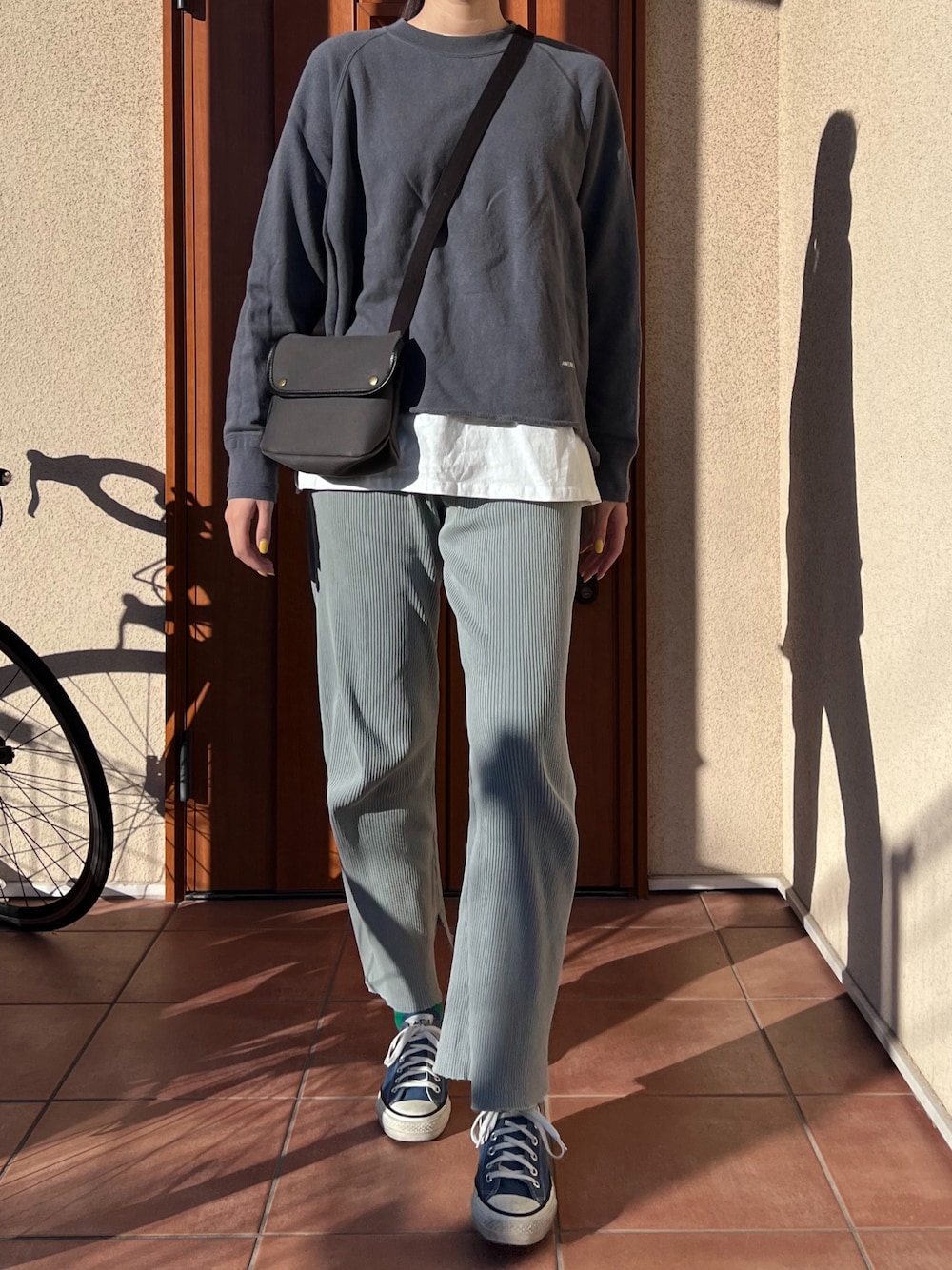 おはようございます☺︎ かなり楽な格好🔵⚪️ ちょっと出かけてきます