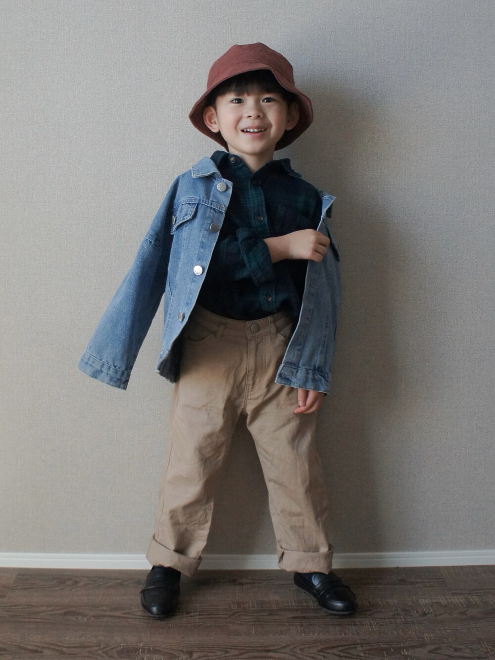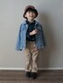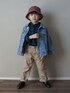 秋色コーデにデニムジャケット羽織って 春先取りコーデ♥️ 差し色赤で明るくしたよ♩ REO : 105cm / 17kg / 110size着用 Instagram : @_re.o__gram 見てくださった方ありがとうございます♪