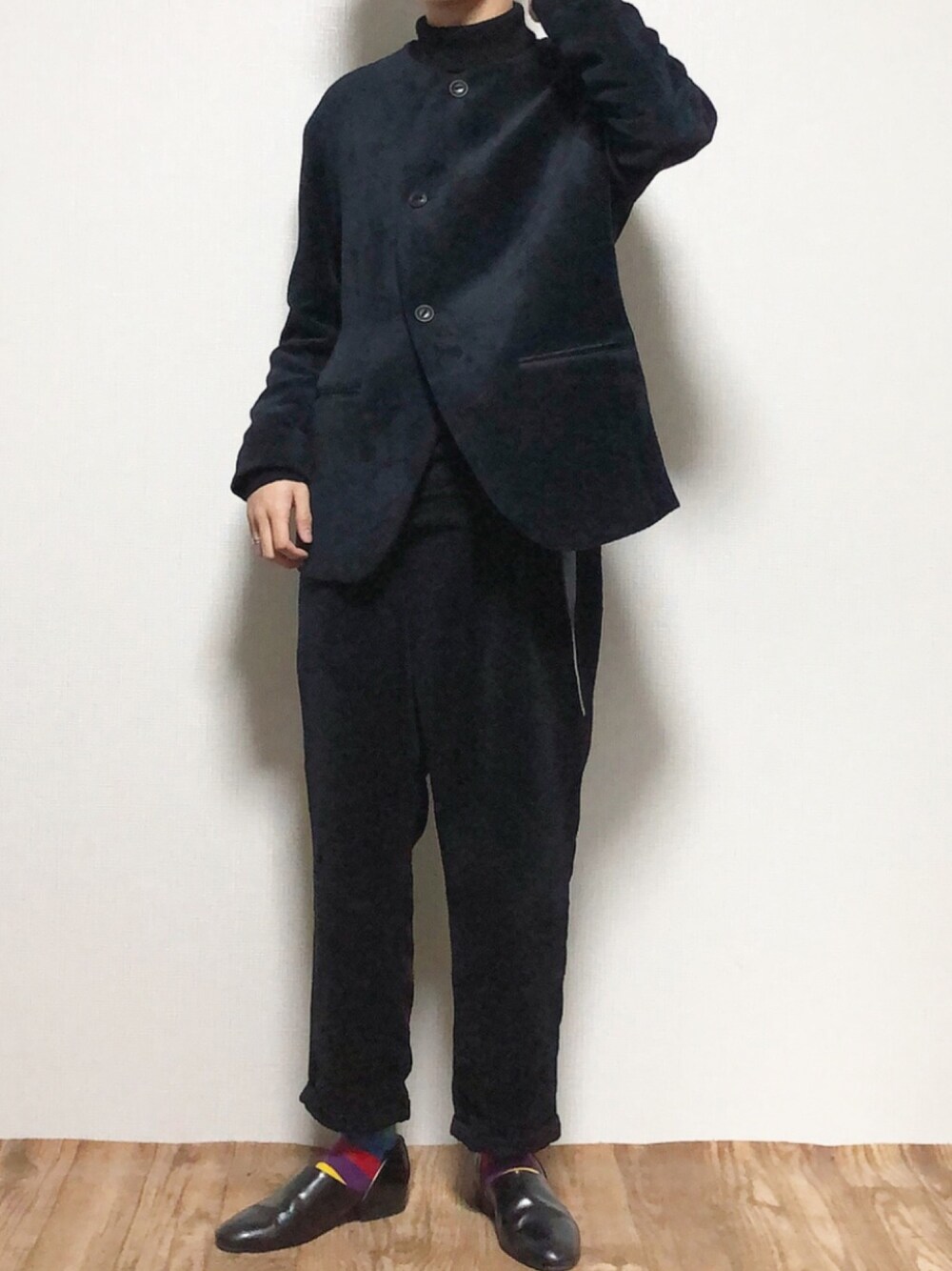 いつもいいね、SAVEありがとうございます!! オールブラックのセットアップ🥺 ソックスはハッピーソックスのものです!!
