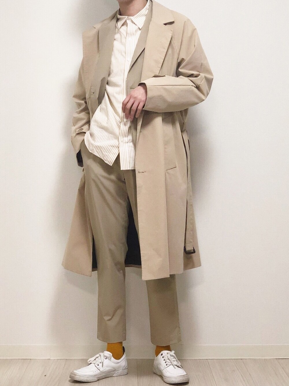 ベージュに溺れるマン😉 チノパンとイエロー靴下の相性良いな〜ってなんとなく思ってる