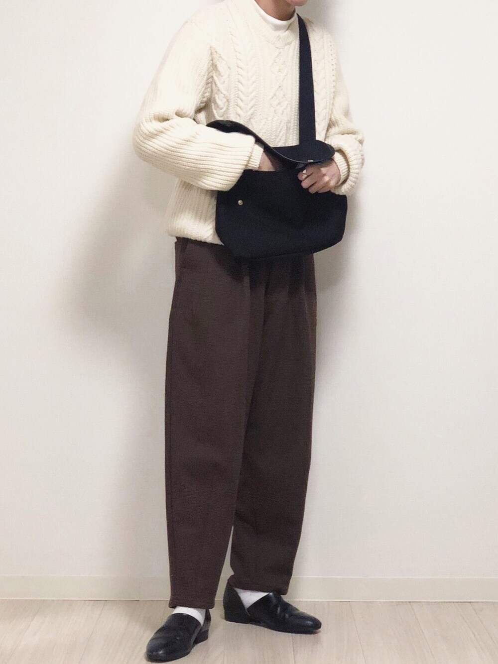 白ニットにブラウンパンツは合わないわけがない😌😌😌