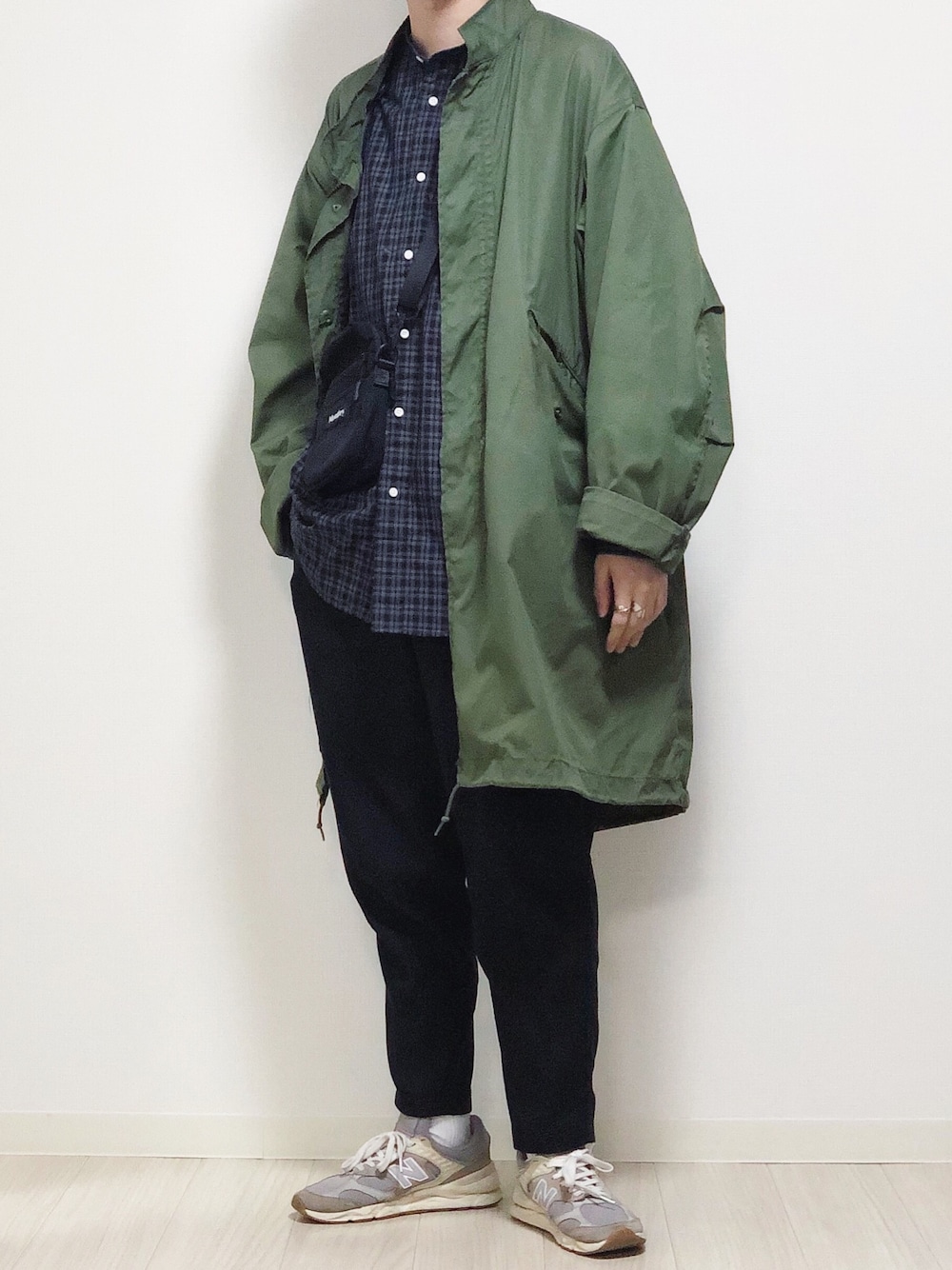 モノトーンな感じで😌 ジムフレのチェックシャツはほんと着やすいです🥰