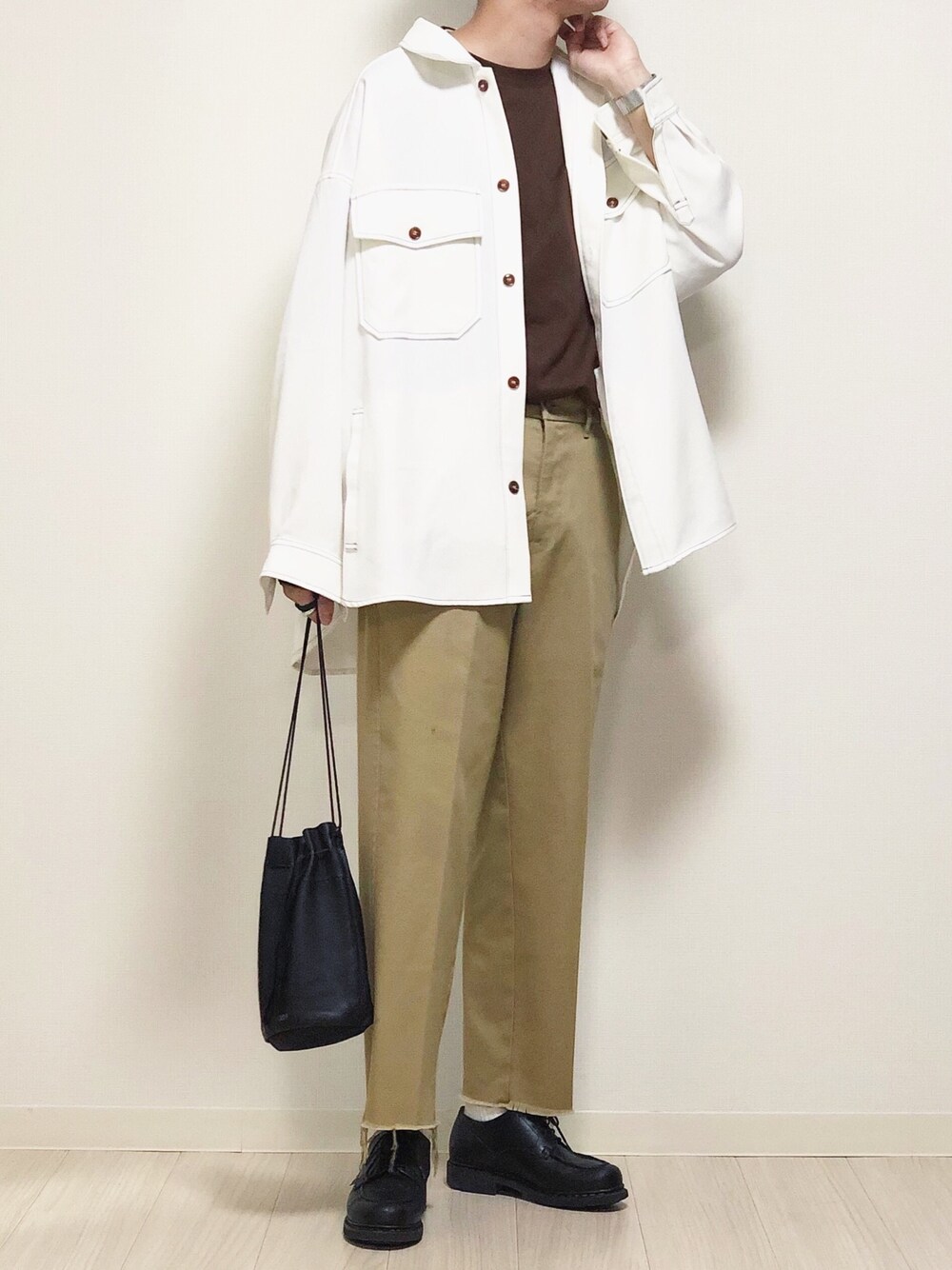 アースカラーのカジュアルな色味だけど綺麗目な感じ😌 エアリズムT夏はめちゃめちゃ活躍しそうで楽しみ!