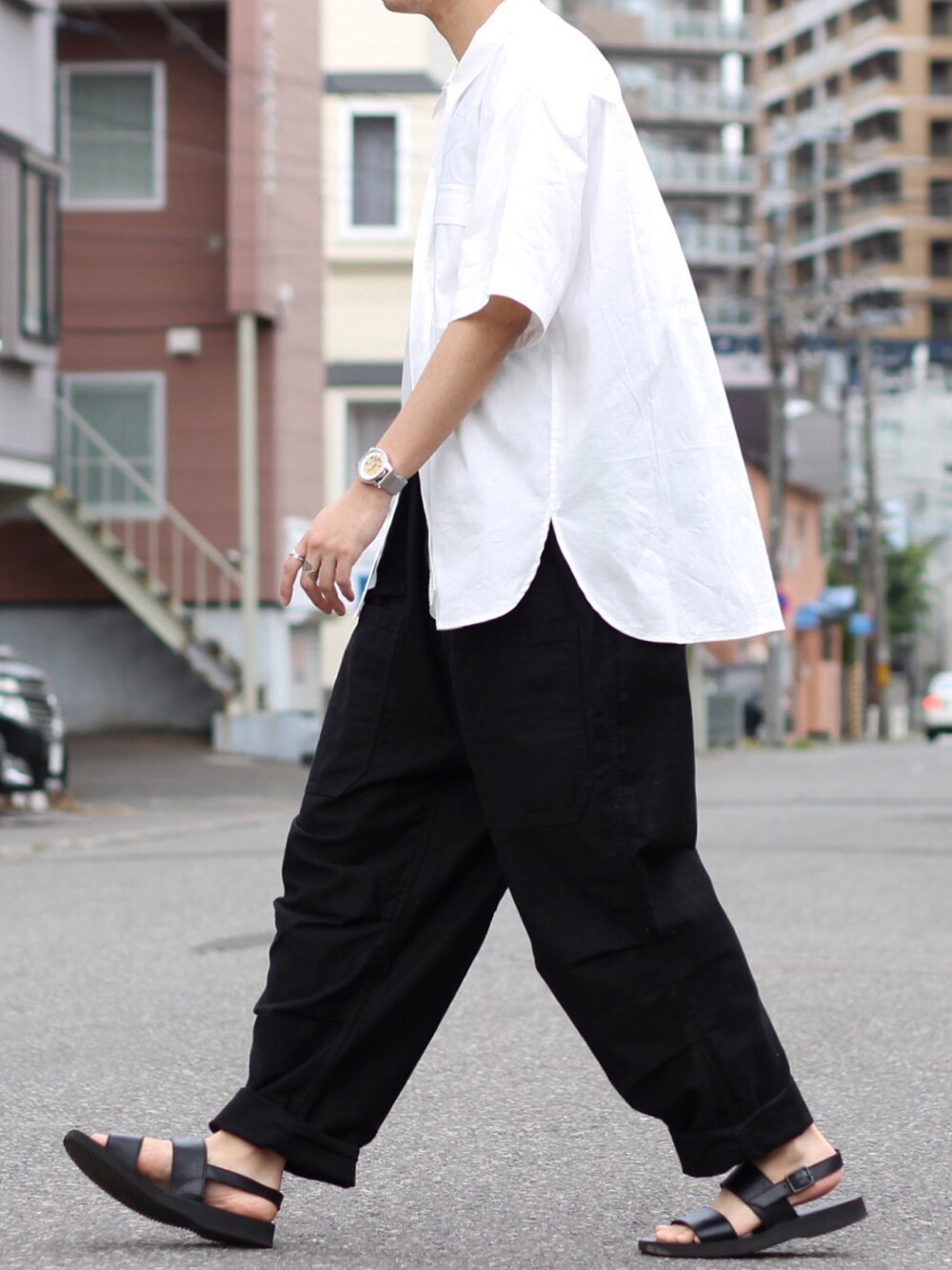 オーバーオールにオーバーサイズのシャツ羽織るだけの簡単コーデ😌 オーバーオールの上に何か羽織ると独特のパンツのシルエットになって割とすきです🔥