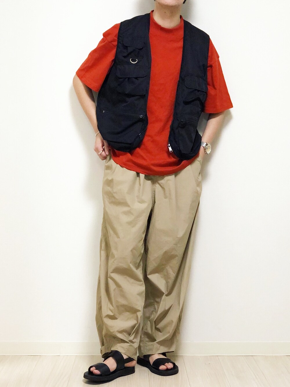 久々のフィッシングベスト😌 オレンジとベージュって結構相性良いんですよね😌