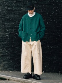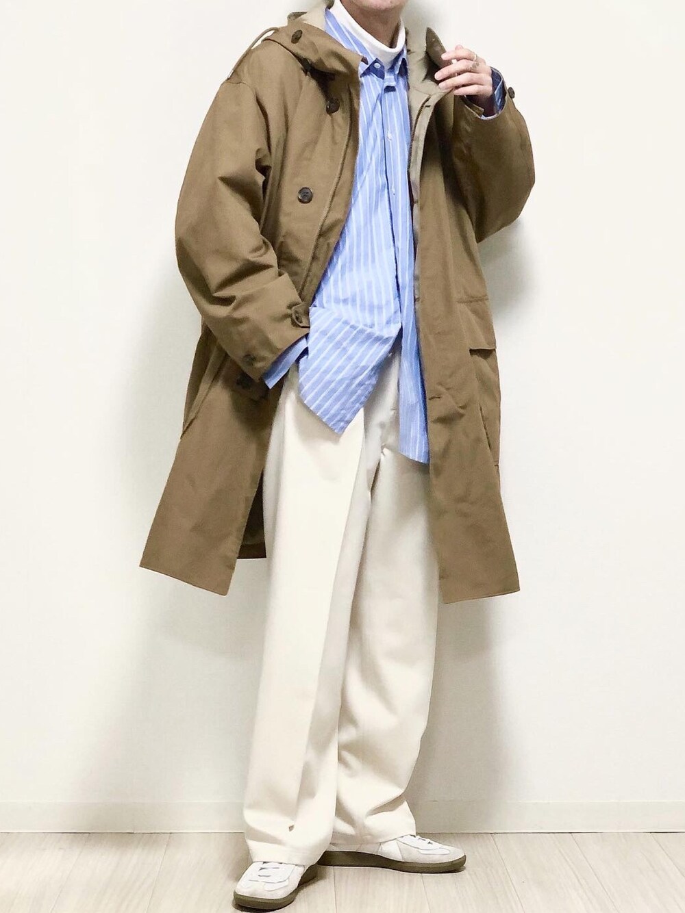 ベージュとブルー合わせ🙆♂️ y/mスラックスめちゃめちゃ使いやすくて助かる🥰