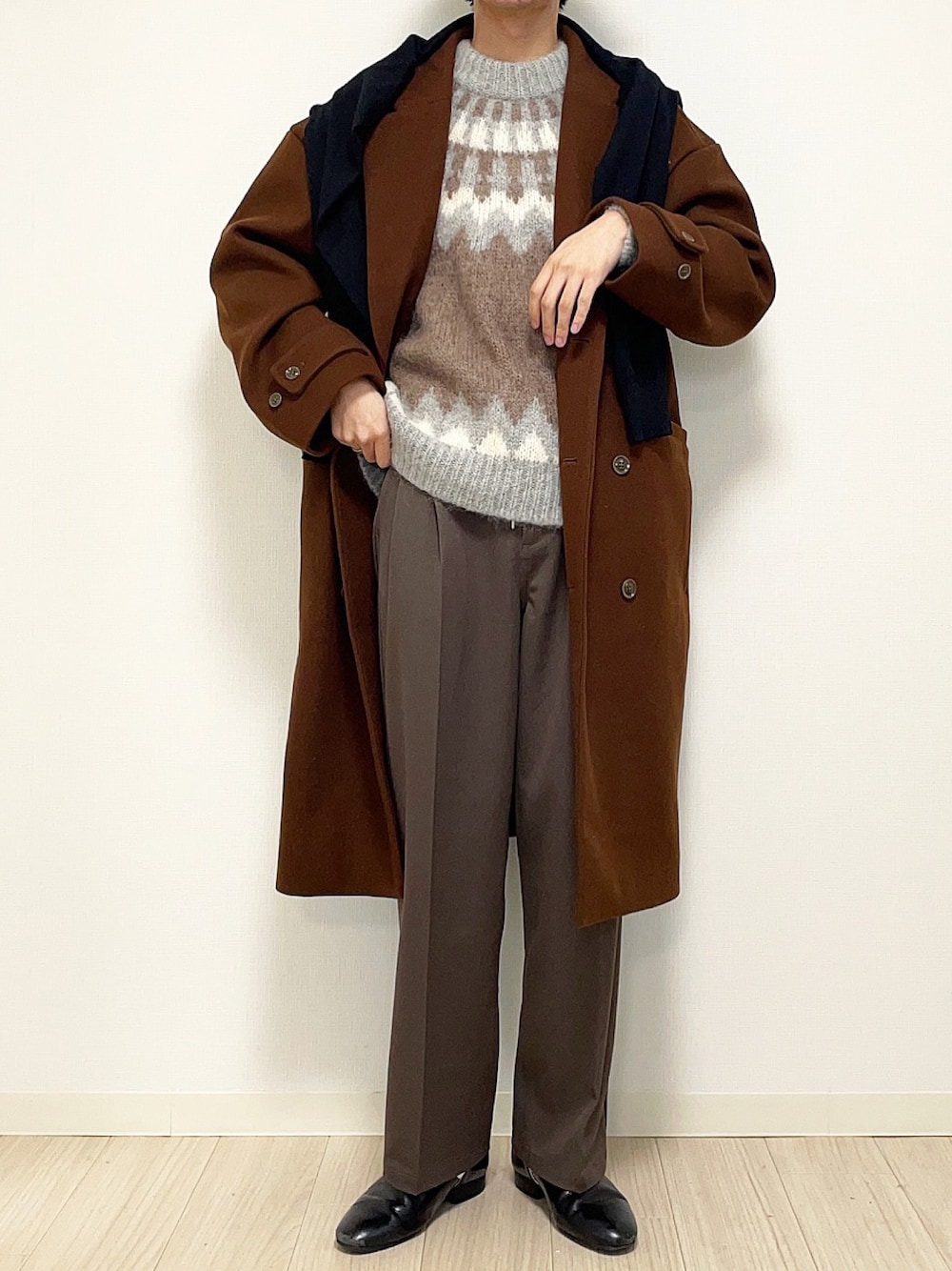 reposukeのチェスターコート「Melton Double Chesterfield Coat/メルトンダブルチェスターコート」を使ったコーディネート