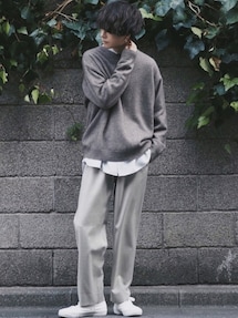 スノーパーカーとオープンカラーシャツ合わせ春感あって良いかも☺️ 下のパンツブラウンにしたけどホワイトでもブラックでもいけそうですね!