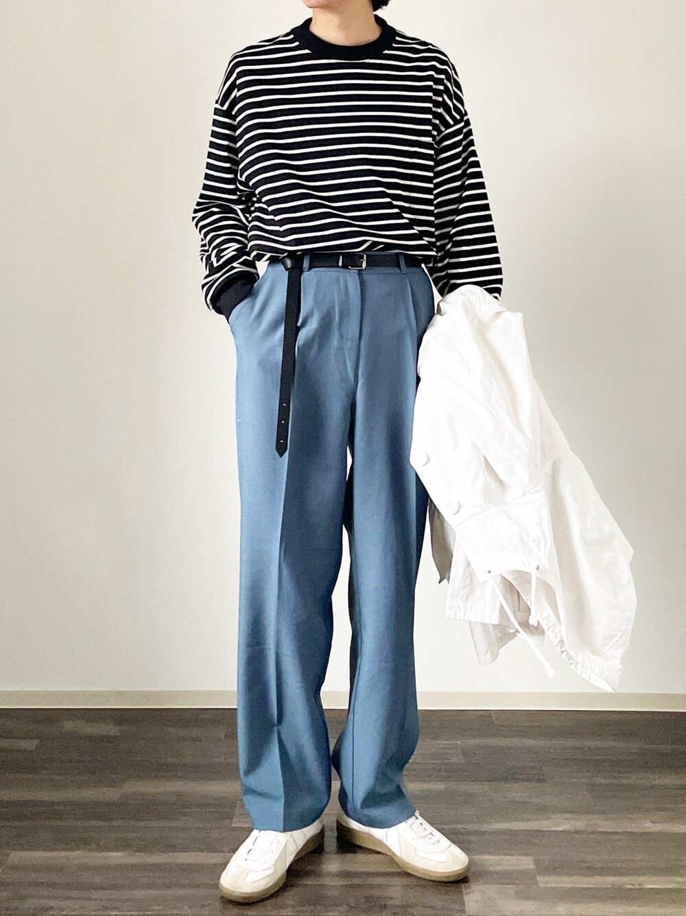 ボーダーとブルーのパンツで春コーデ🩳 タックイン良い感じです
