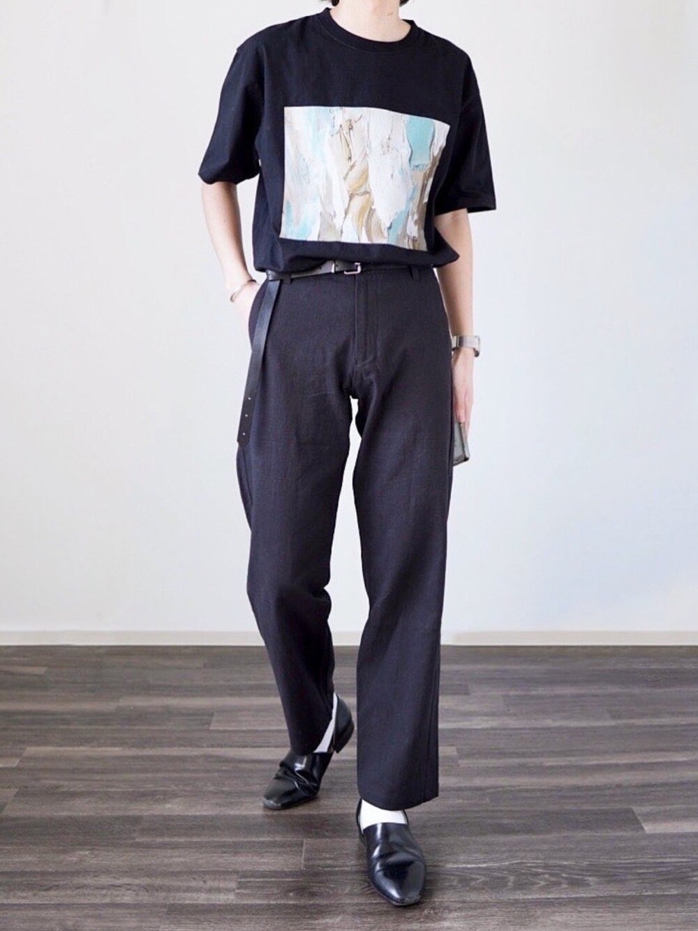 グラフィックが映えるオールブラックコーデ🙆♂️