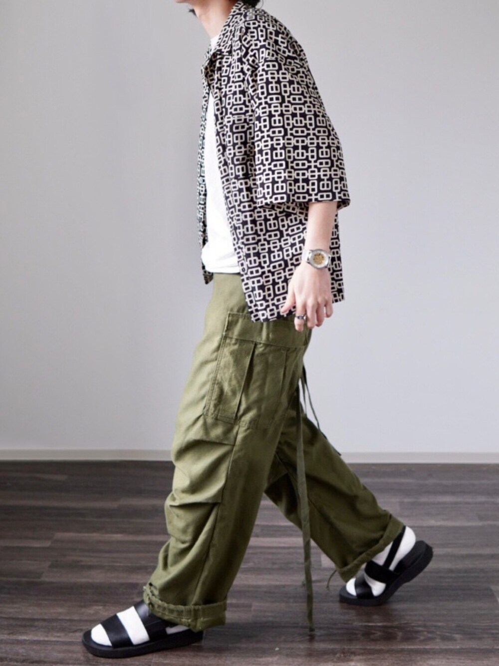 ブラックの柄シャツ×軍パン🙆♂️ たまにはクセのあるシャツも○