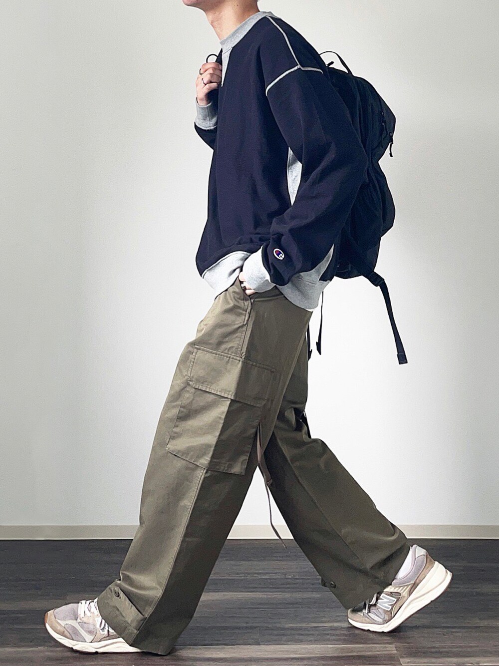 ステッチが効いたロンTと軍パン🙆♂️