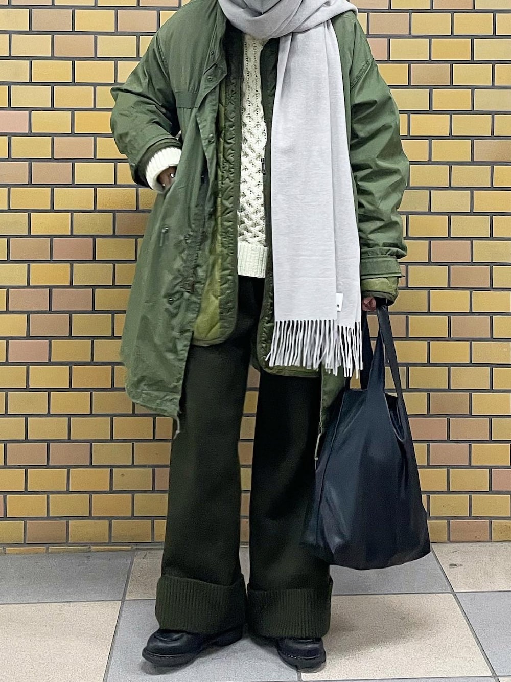 カーキで綺麗めミリタリースタイル
