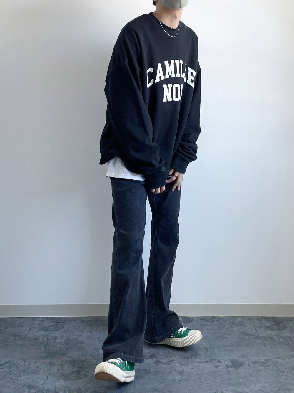 ロゴスウェットできれいめストリートスタイル🙆‍♂️