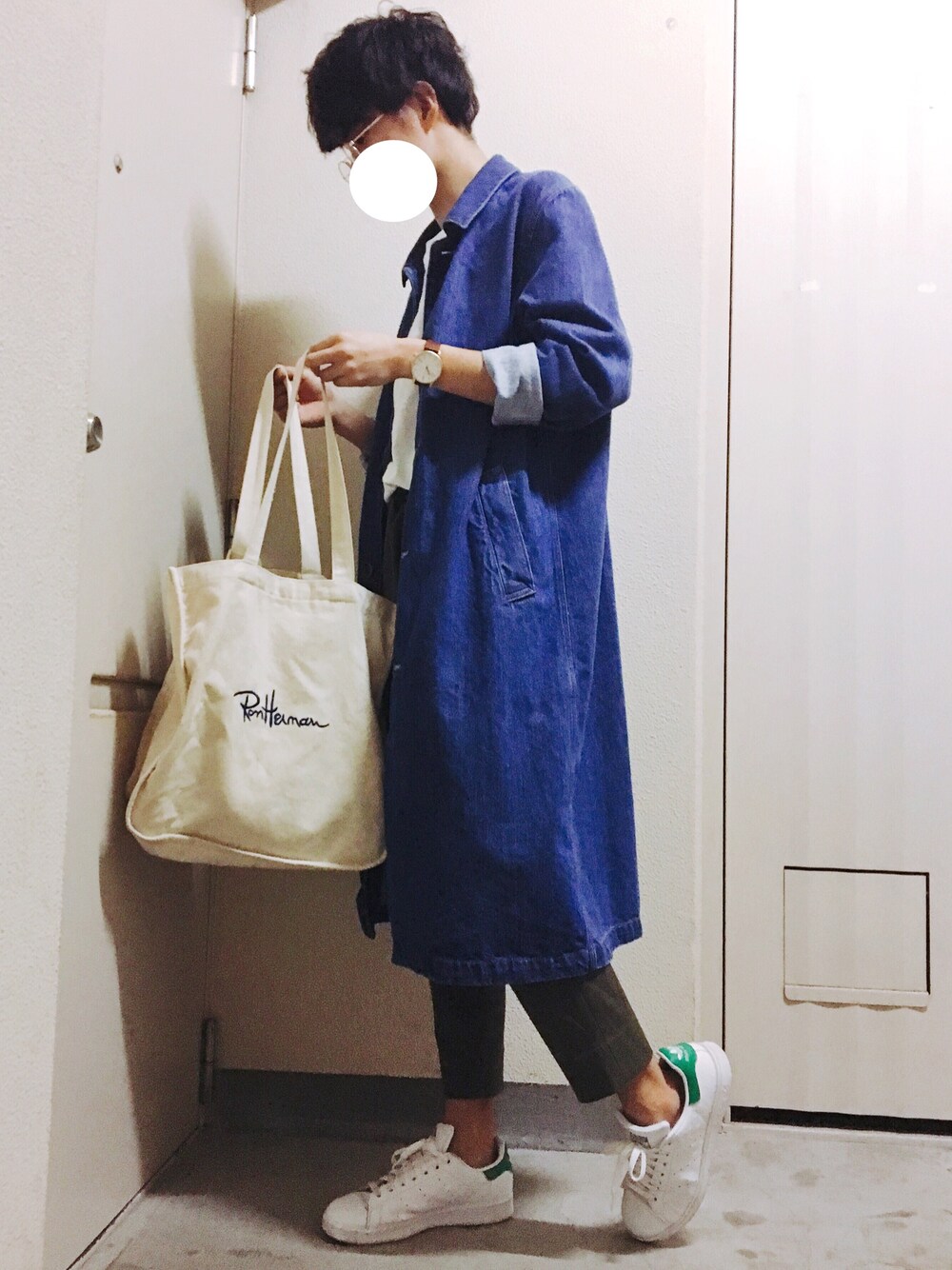 【instgram👉@reposuke】 【Twitter👉@reposuke_wear】 れぽすけです!! デニムコートにスラックス👚 5月もよろしくお願いします!!!!