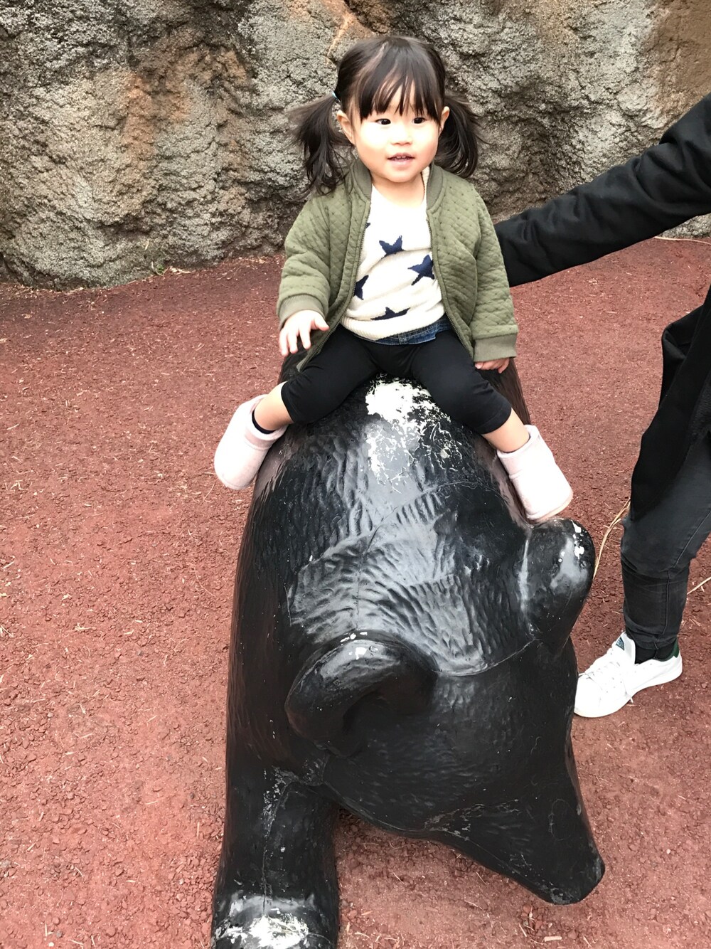 動物園🦁🐯🐵🐨🐼🐻🐰🐹 れのあさん、はしゃぎすぎ、暴れすぎ🙊💕 親子リンクコーデ💕💕 グリーンのアウター デニムのスカート 最近の、れのあさんわ、このブーツしか履いてくれない😂