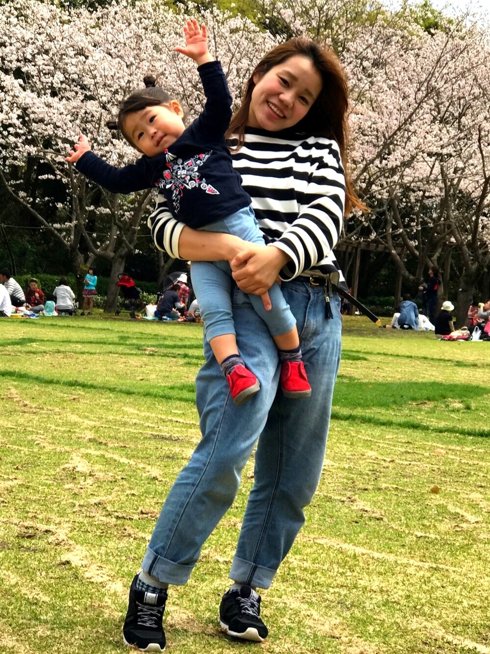 お花見と見せかけての、またまた、動物園コーデ🐻🐶🐵🐨🐯🐧🦁 れのあさんわ、Laundryの可愛いTシャツに、UNIQLOの可愛いふりふりパンツ💞 ママわ、UNIQLOのトップスに、弟のおさがりジーンズ👖