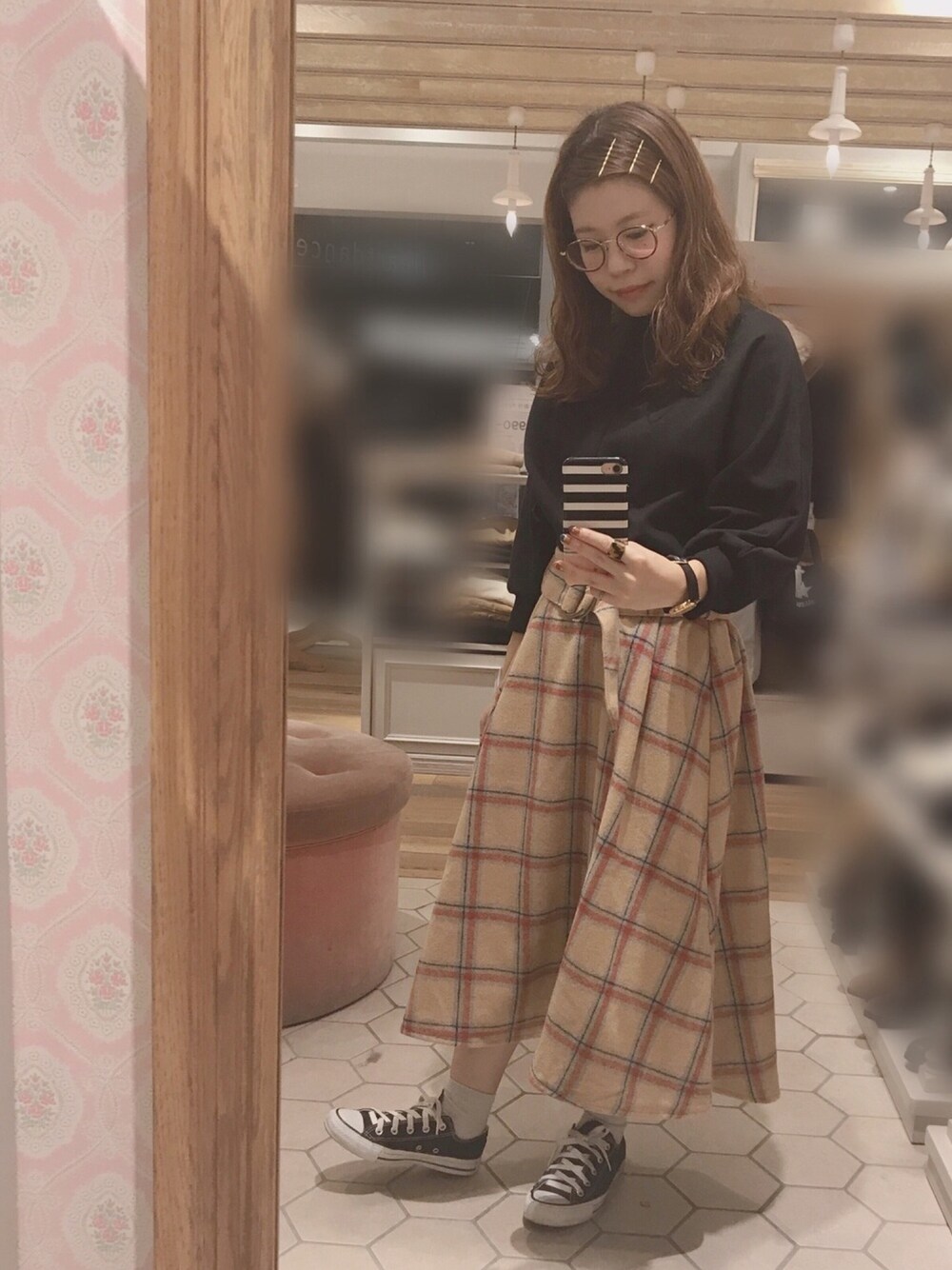 こんにちは 💭 ご覧いただきありがとうございます ♡ チェックスカートが主役のコーデ 🌼 前回とトップス(色違い)、ヘア、靴下の色 を変えただけです 🙇 前回同様、スカートがメインのコーデなので 他はベーシックな色味で統一 ◎ スカートがより引き立つ色合わせにしました ◎ 他にもチェックスカートや今から使えるニットなど 新作が続々と入荷しております 🍃 ぜひお近くのearthへ足を運んでみてくださいね ♡