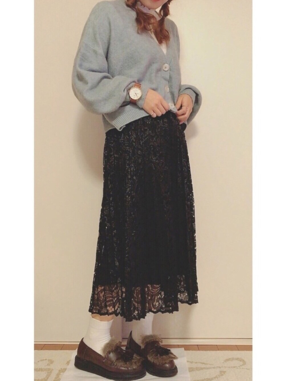 reina.のニット/セーター「リブフリルハイネック5Sプルオーバー」を使ったコーディネート