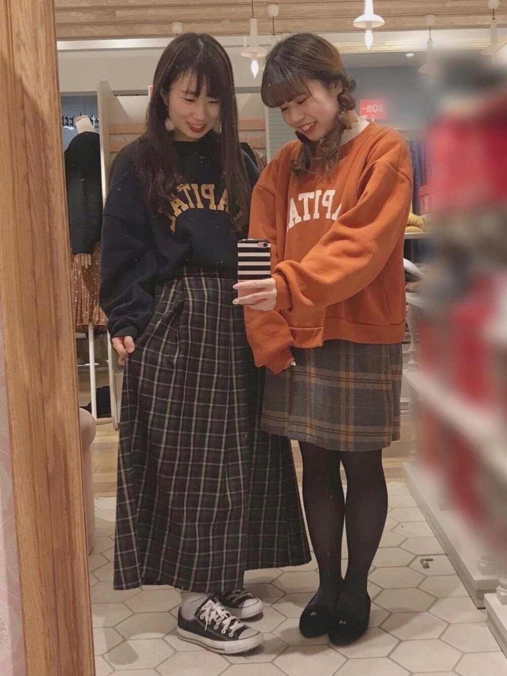 こんばんは 💭 ご覧いただきありがとうございます ♡ 先日の出勤コーデ 👗 同期ちゃんとお揃いトップス ♡ チェックスカートってところも何気にリンク ♡ earthはカラバリ豊富なので お揃いコーデにおすすめです 🙆🏻♀️ ぜひお近くのearthへ足を運んでみてくださいね ♡