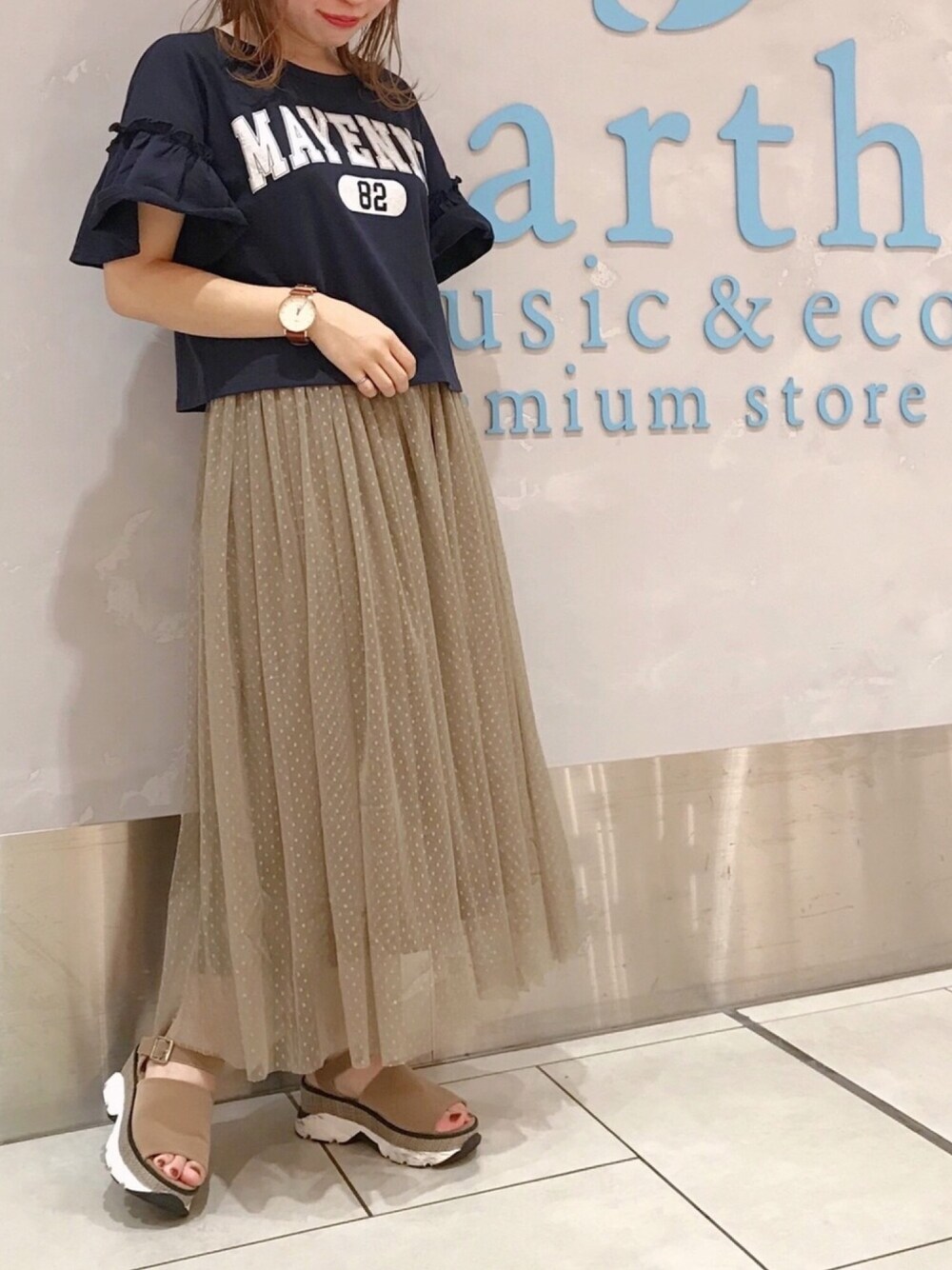 こんにちは ☀️ ご覧いただきありがとうございます ♡ 2wayドットチュールスカート ♡ ペチコートが取り外し可能なので、 ショーパンやスキニーを履いても 🙆🏻♀️ Tシャツはショート丈なので、 インしなくてもバランスよくキマります ♡ ぜひお近くのearthへ足を運んでみてくださいね 🐾