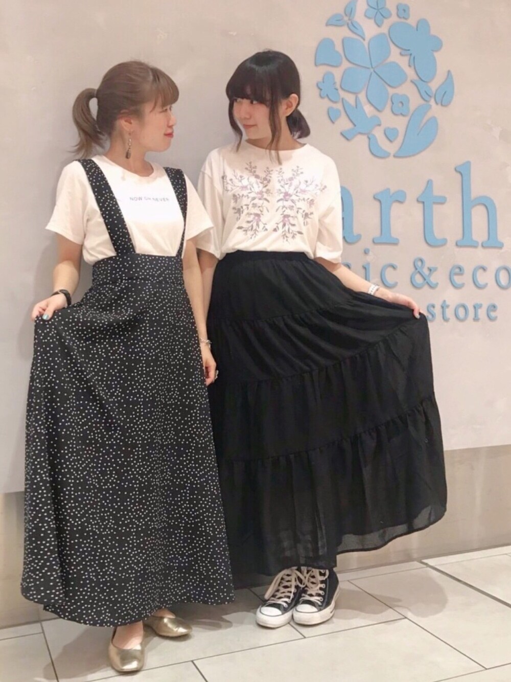 こんばんは 🌟 ご覧いただきありがとうございます ♡ off white × black 🐼 リンクコーデです! 友達やパートナーと出掛ける時、 カラー指定のドレスコードをしても楽しいですよ ♡ ぜひお近くのearthへ足を運んでみてくださいね 🐾