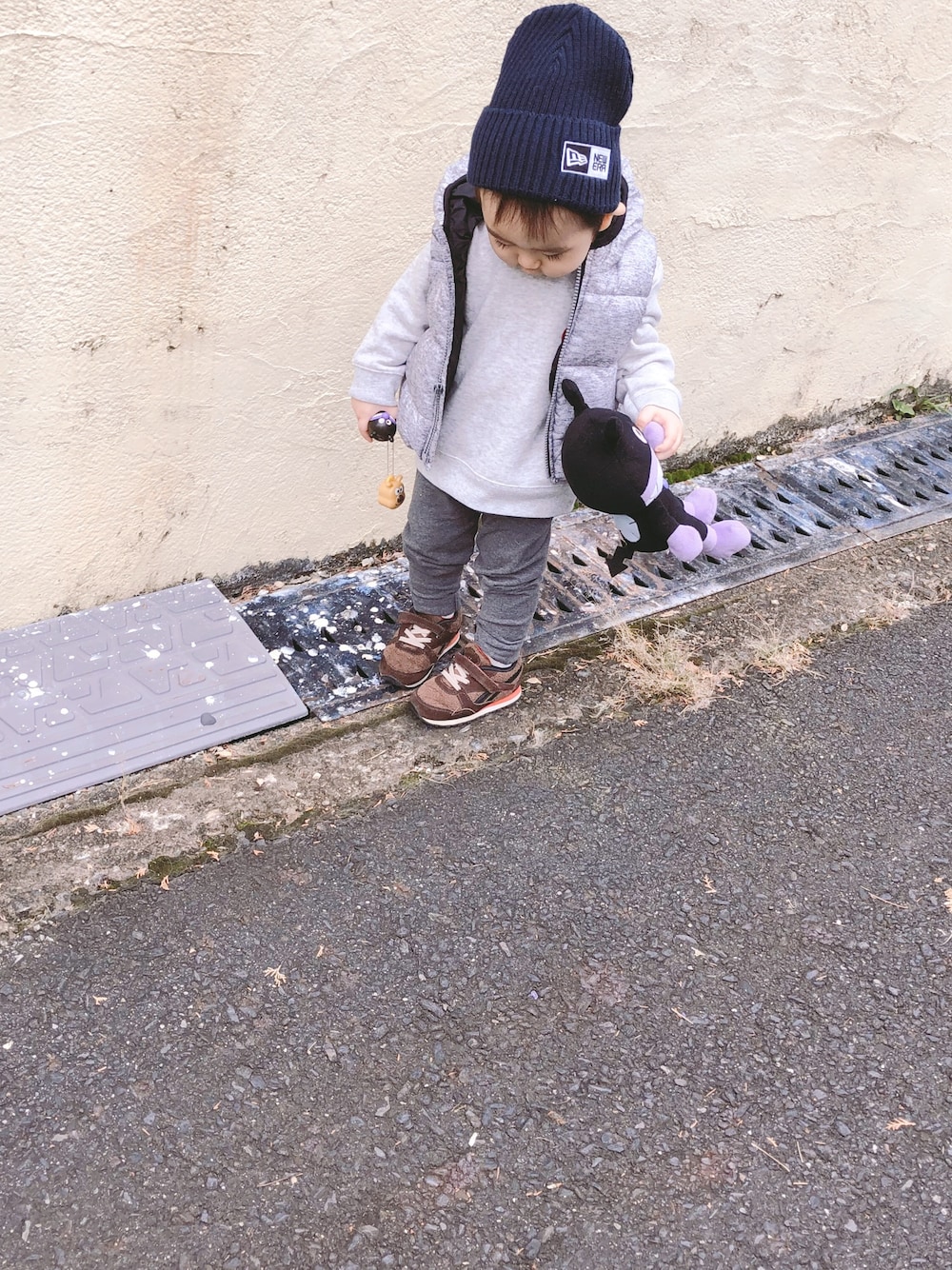 シルバーのgap babyのダウンベスト。 去年かったやつが今年ピッタリで感動🥺✨