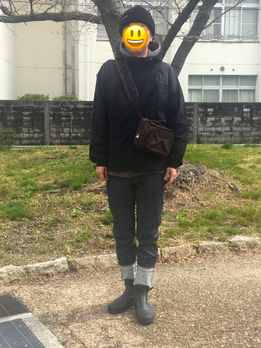 雨の日はマウンテンパーカーとレインブーツが便利ですね。