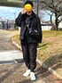 #ほめられ本命コーデ 本命といえばモノトーンがお気に入り #comdegalcons ニット #maisonmargiela バッグ #yoke × #barbour ジャケット 全て黒で合わせて #newbalance のスニーカーの白で抜け感出してみました。 ダウンパンツは暖かくてヘビロテ中です。