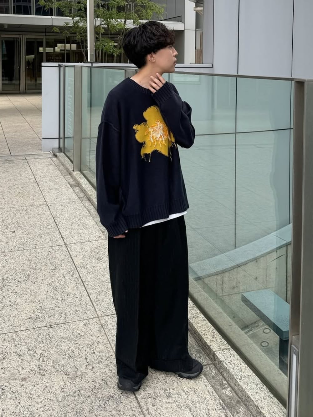 りょうのニット/セーター「inside out flower motif cotton sweater / インサイドアウトインターシャフラワーモチーフニット」を使ったコーディネート