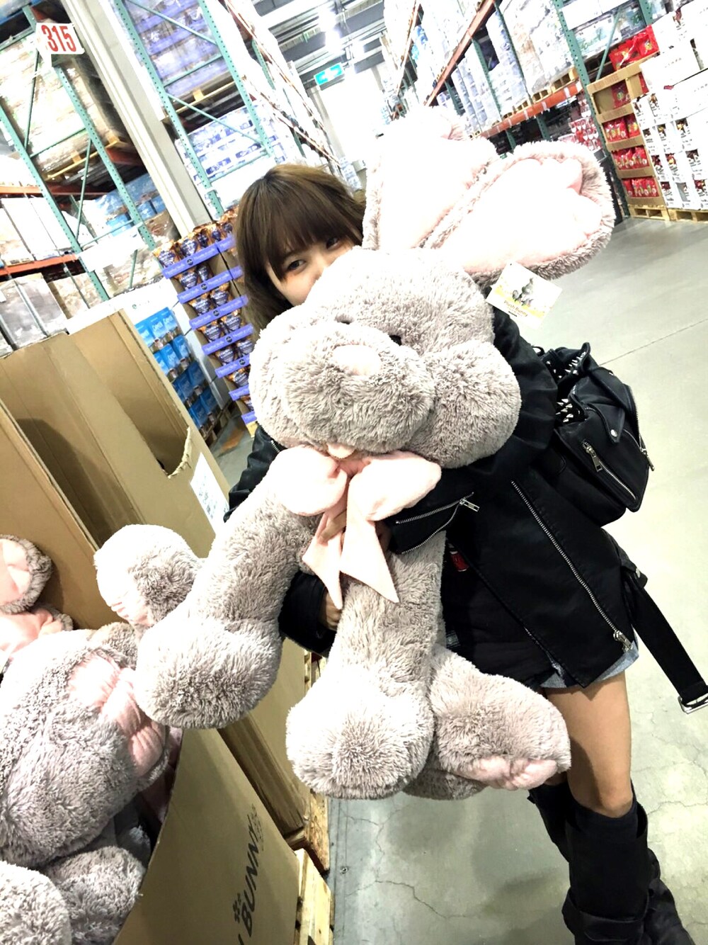 コストコのおっきなウサギのぬいぐるみと一緒に♡この後お持ち帰りしましたw JKゎforeverのライダースコート♡ 鞄ゎGLAD NEWSのライダースバッグ♡ ライダースブラックコーデ☆