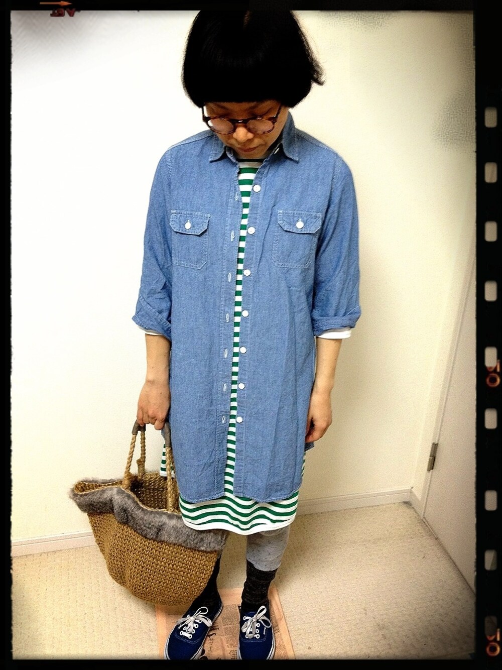 シャツ/miusa ボーダーワンピ/beams boy かごバッグ/beams boy スニーカー/VANS ボーダー着てる日は何だか安心( ^ω^ )