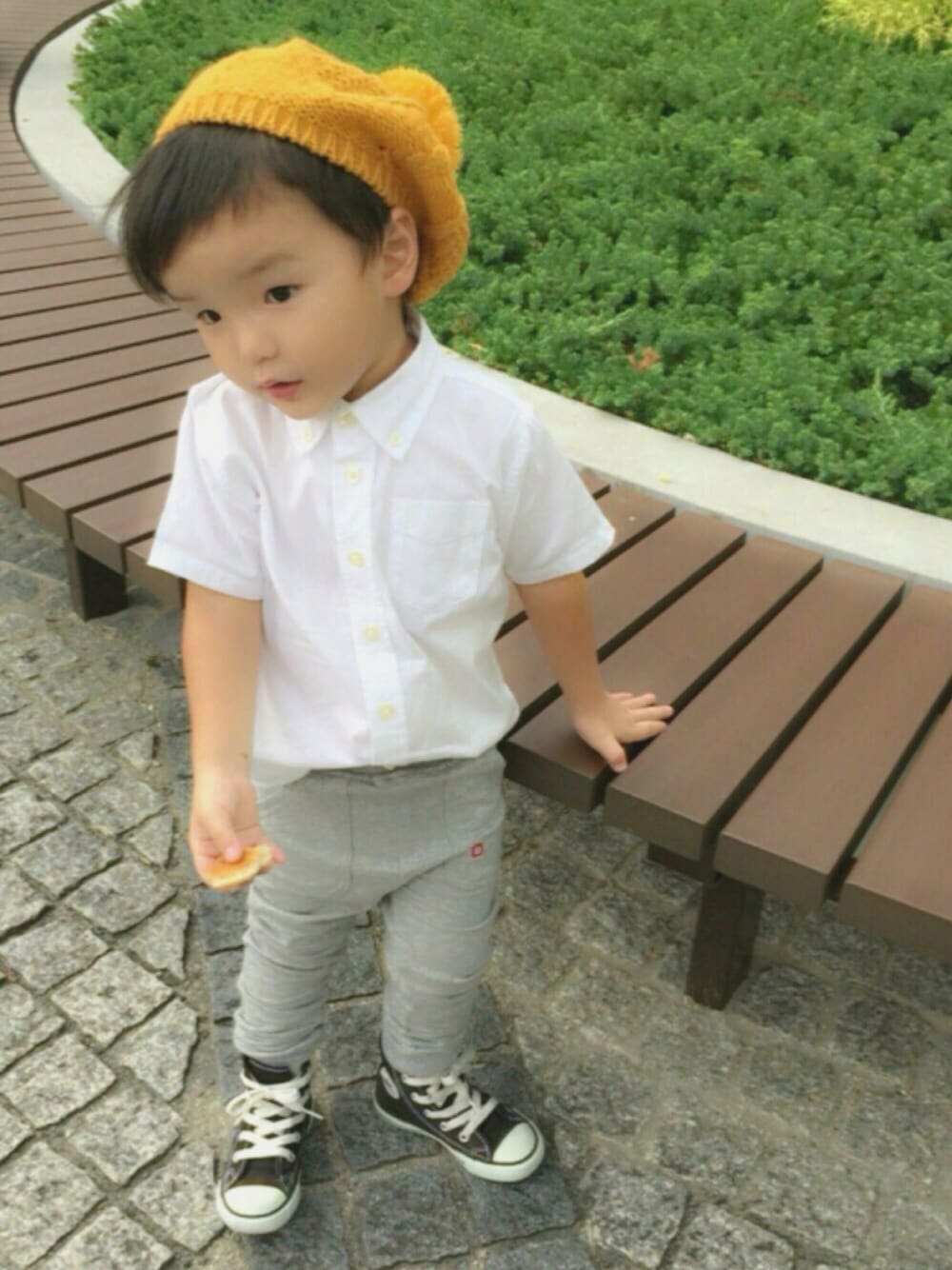 スウェットパンツ&シャツコーデ 初挑戦o(^▽^)o このスウェットパンツ、紺色も欲しいな〜〜
