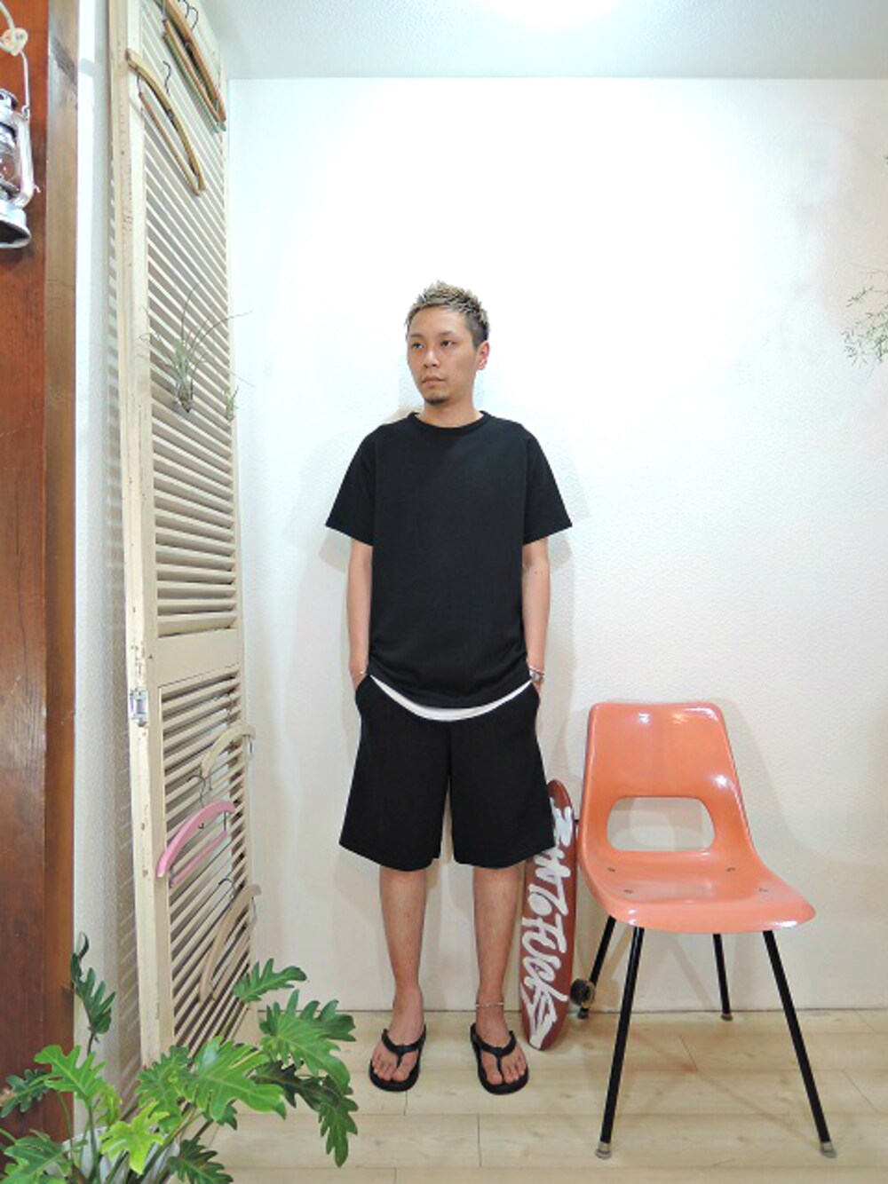 tee/LOCALINA-FLAT SEAM TEE -PLAIN-(SIZE 2) inner/ELEVEN EIGHT-T/Cレギュラーワッフル タンクトップ(SIZE M) pants/LOCALINA-WIDE SHORTS(SIZE 1) shoes/LANTIKI CROWN-SEA SUN(SIZE L)