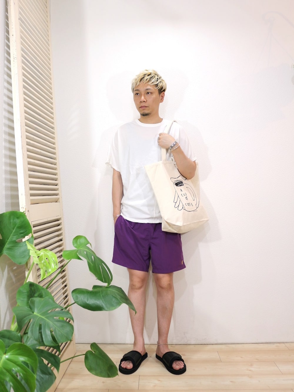 tee/melple-Salt Creek ドルマンクルーS/S(SIZE S) pants/melple-Lotus ショーツ(SIZE S) shoes/SUICOKE-SIV(SIZE US8) bag/MARK GONZALES-TOTE BAG(SIZE F)