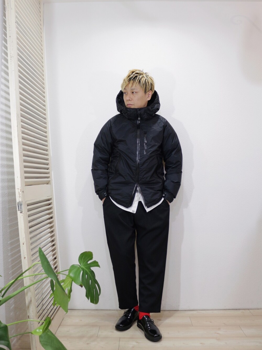 outer/NANGA-AURORA DOWN JACKET(SIZE S) shirt/Kelen-Nicolous(SIZE 38) pants/ReRe-COMFORT TROUSERS(SIZE 2) shoes/MANEBU-”FOOT”FACE SKIN(SIZE 40) socks/decka-REVERSIBLE SHORT SOCKS(SIZE MEN)