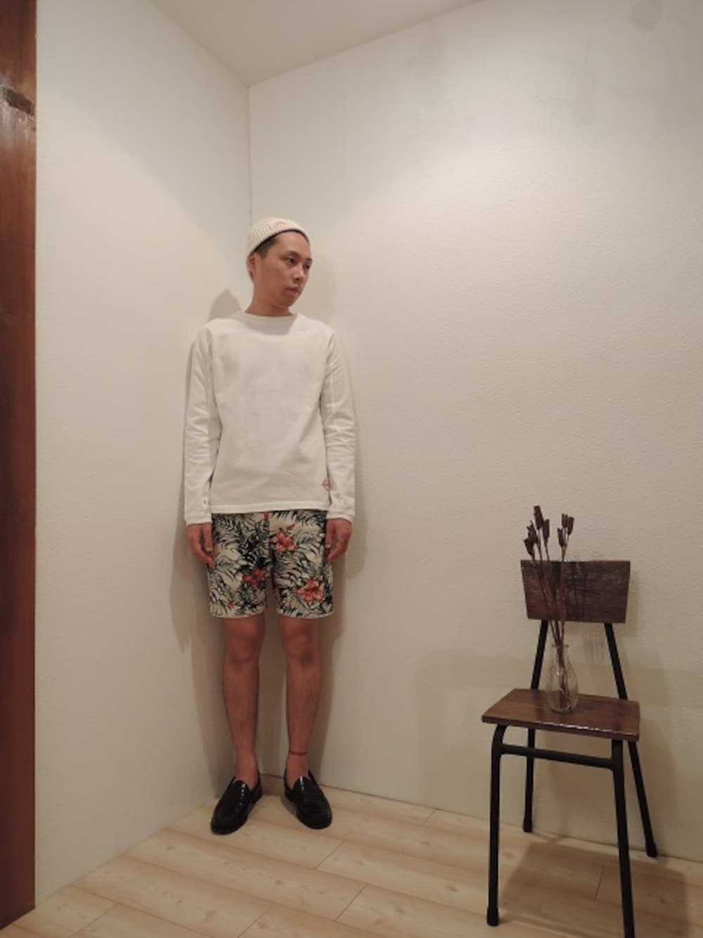 tee/SALT WATER COWBOY-ACTIVE FOOTBALL TEE(SIZE S) pants/F.O.B FACTORY-FLOWER WORK SHORTS(SIZE S) cap/SUNNY SPORTS-COTTON KNIT CAP(SIZE FREE)