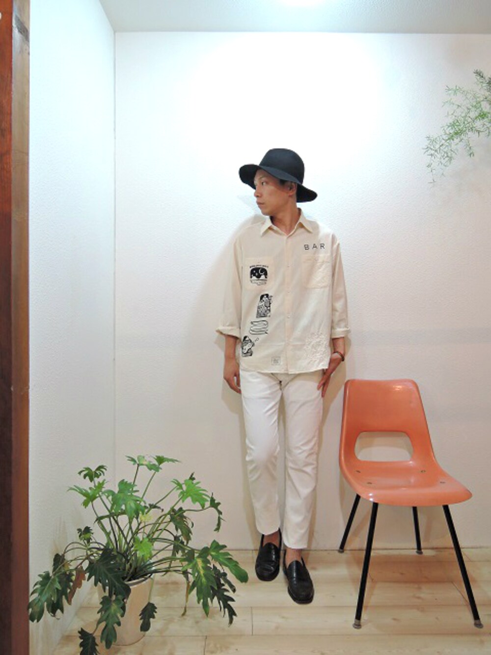 shirt/SALT WATER COWBOY-DOODLE SHIRTS(SIZE M) pants/SUNNY SPORTS-VENICE CORDUROUY(SIZE 30) accessory/STUDEBAKER METALS-TWISTED CUFF(SIZE M)