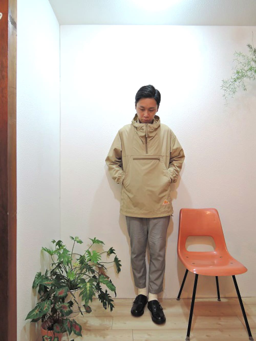 outer/SUNNY SPORTS-PULLOVER ANORAK(SIZE S) tee/SUNNY SPORTS-POCKET CREW NECK TEE(SIZE S) pants/melple-リラックスイージーパンツ(SIZE S) shoes/MANEBU-"ROAR"FACE SKIN(SIZE 40) accessory/STUDEBAKER METALS-TWISTED CUFF(SIZE M)