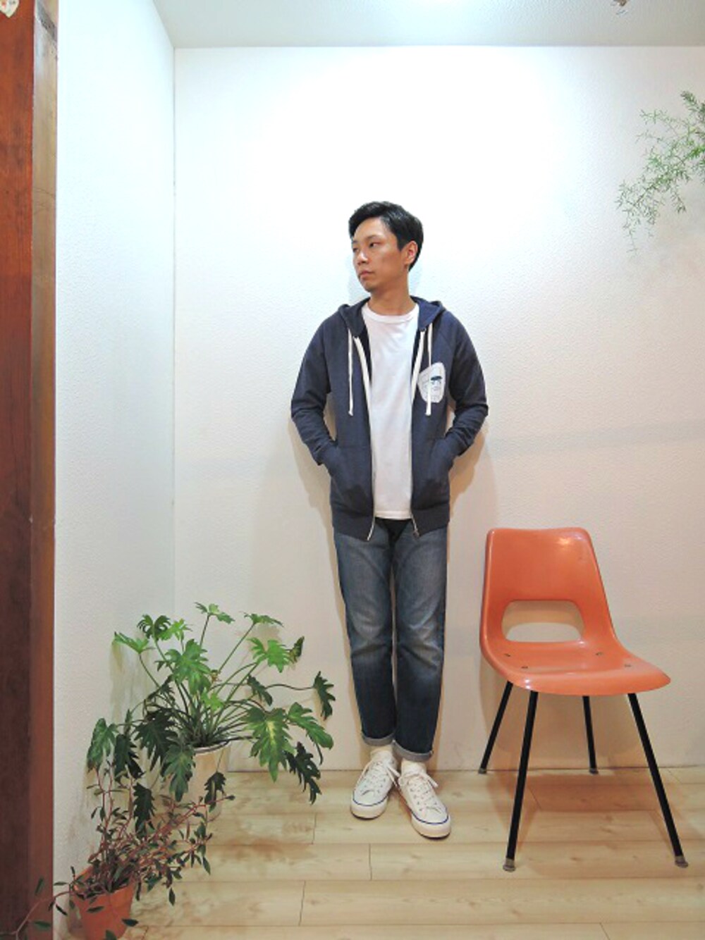 tops/SALTY'S-SALTY CAPTAIN PATCH HOODY(SIZE XS) tee/SUNNY SPORTS-POCKET CREW NECK TEE(SIZE S) pants/F.O.B FACTORY-ST.STARAIGHT 5P(SIZE 30) shoes/SUNNY SPORTS-MOON&SUN CANVAS SNEAKER(SIZE US7) accessory/STUDEBAKER METALS-TWISTED CUFF(SIZE M)