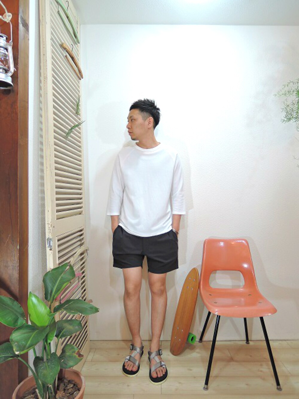 tee/melple-カノコラグラン7分袖(SIZE M) pants/melple-TOMCATショーツ(SIZE S) shoes/SUICOKE-CHIN2(SIZE US8) accessory/ReTrick SELECT-Indian Jewelry(TOM HAWK)(SIZE ONE)