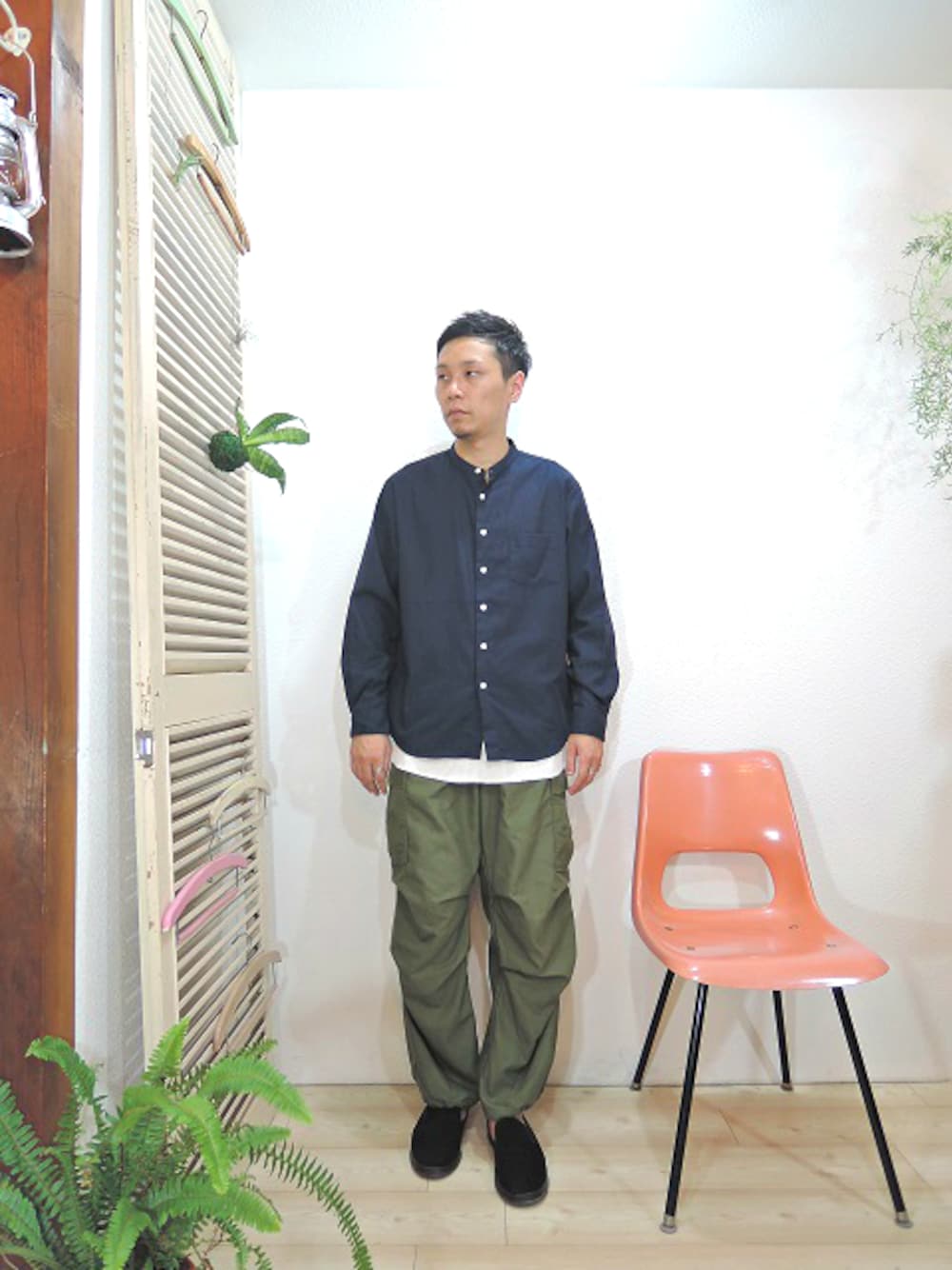 shirt/MANUAL ALPHABET-ビエラLOOSE FIT バンドカラーシャツ(SIZE 2) inner/ELEVEN EIGHT-T/Cレギュラーワッフル タンクトップ(SIZE M) pants/U.S.ARMY-M-65 FIELD PANTS(SIZE S-S) shoes/MANEBU-"HEEHAW"SUEDE(SIZE 40)