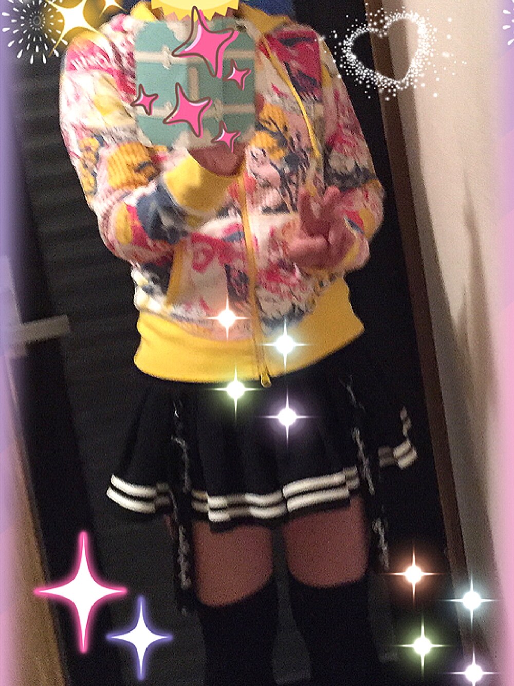 春らしく、黄色のパーカーに黒のスカパンにしてみました( *´꒳`* ) 外見はミニスカに見えて中はパンツ式ので風の強い日も安心ですにゃ(^^♪