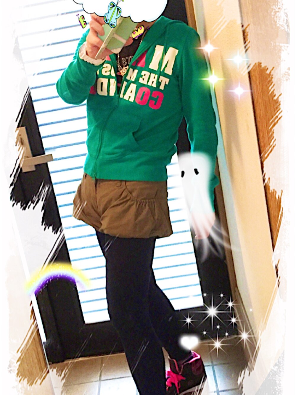 お気に入り😍のココルルのパーカーに✨カーキ色の✨バルーンショートパンツ(^^♪ 子供みたいだけど💦やはりこの服装が動き易く一番好きだにゃ😀🎶