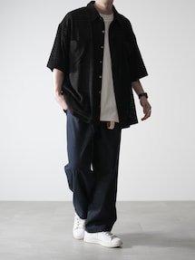 あすのシャツ/ブラウス「【JULLIN】 loose open collar stitch shirt / ルーズオープンカラーステッチシャツ」を使ったコーディネート