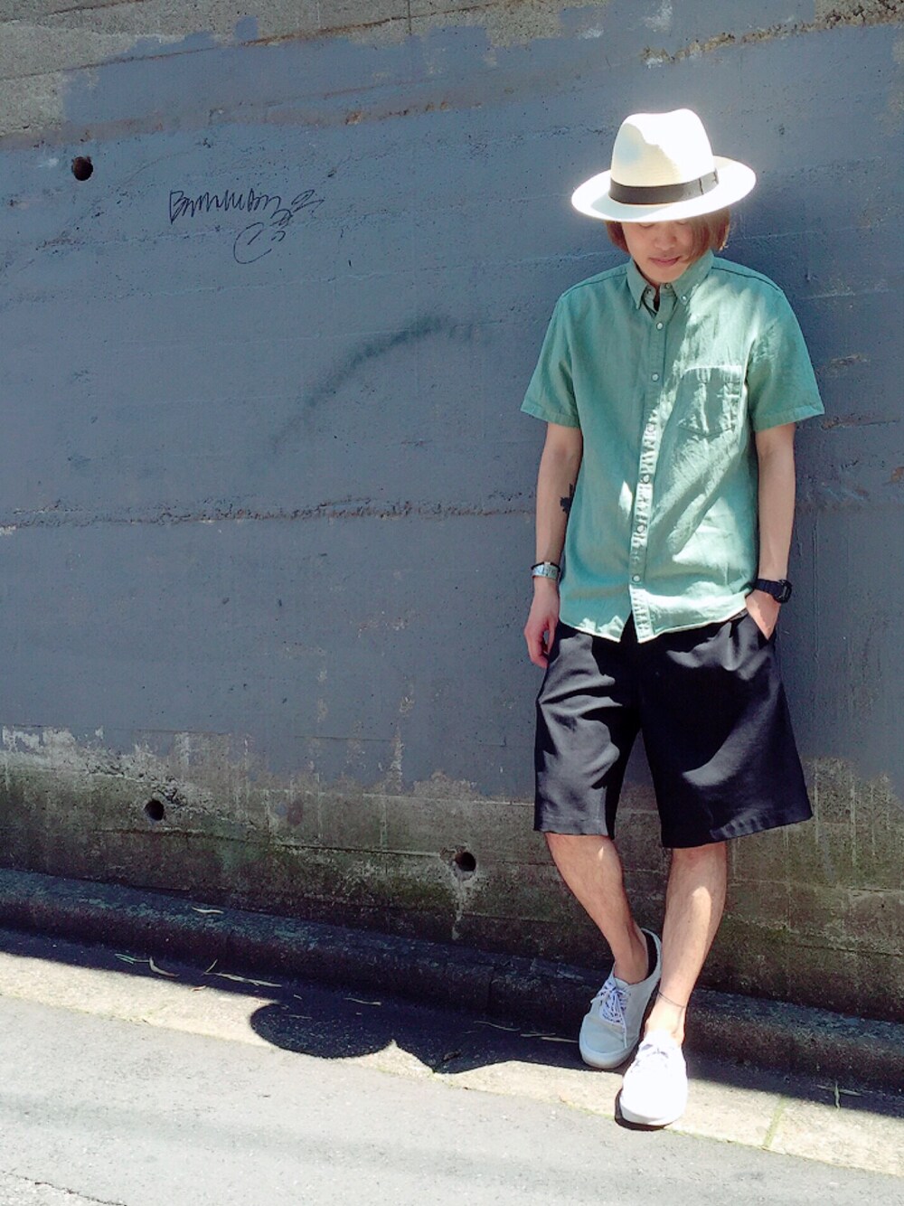 夏っぽく爽やかなグリーンのシャツをGET 黒白ばっかり着るからなんか新鮮 とりあえず暑すぎて倒れそう 皆さんいいねセーブコメントありがとうございます! instaもやってるので、是非😁