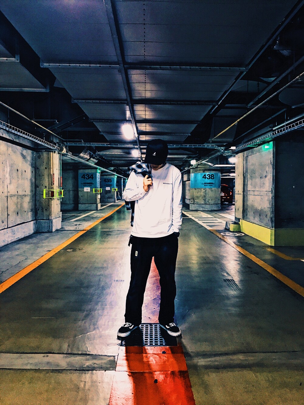 ブラック系のスニーカー、ブラック系のその他パンツを着用したメンズの春コーディネートの1枚目の写真
