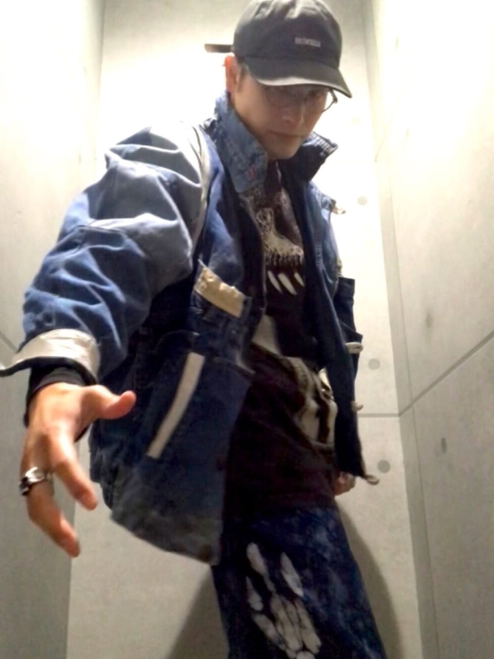 古着コーデ。 ただ好きな服を着ました。 リメイク デニムジャケットはかなりインパクトのある一品です。 販売はしてませんが、興味ある方がいたらお譲りします。 Tシャツ、パンツは大好きな恐竜です。 面白いデザインはテンションが上がります。