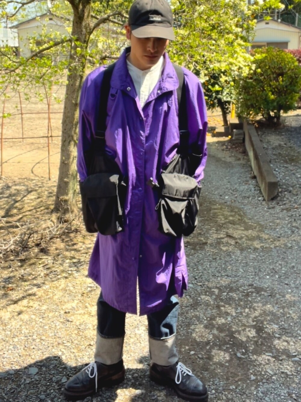 ご覧頂きありがとうございます。 いいね、お気に入り、フォロー、感謝致します。 ストリート×モードコーデ。 パープルとブラックで全体をまとめ、デニムやハンティングジャケット、キャップを使うことでストリート感を加えています。 全体的に古着多めのコーデ。