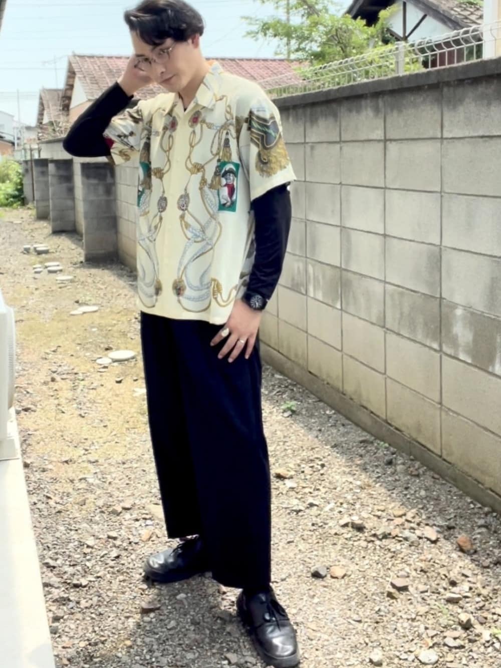 ご覧頂きありがとうございます。 いいね、お気に入り、フォルダイン、フォロー、感謝致します。 約一ヵ月ぶりの投稿です。 仕事が忙しく投稿が止まっていました。 写真が撮れる時は投稿していきます。 さて、私実は介護福祉士でして、デイサービスだとか訪問介護だとか色々やってるところでマネージャー業をしております。 世間的に福祉の仕事にあまり良い印象が無いかなと、なんだか「ダサい」イメージを持っている方も多いのではないでしょうか。 そんな事を思う今日この頃で、これから福祉職のイメージ改革を行なって行こうと思い、「カッコ良い介護福祉士」を目指していきます。 カッコ良いとは容姿では無く、仕事に向き合う意識のことです。 また福祉職にオシャレな人が居ないイメージを抱いている方も少なからずいらっしゃるかと思います。 そんな福祉職のイメージを改革出来るよう頑張りますので、応援お願い致します。 さて、ファッションの方の話ですが、古着の流行は90's、柄シャツ、ジャンプスーツなどでしょうか。 柄シャツは好きで昔から良く着ます。クセが強いのでパンツはシンプルにして合わせたいですね。 これから数日間はここら辺の古着流行アイテムのコーデ投稿をしていきますので、是非見てくださいね。